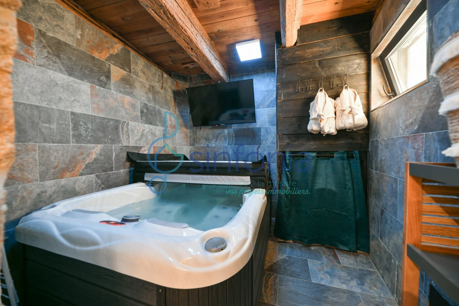 Disposition : Rez-de-chaussée : une agréable cuisine dinatoire, un espace jacuzzi et un coin buanderie. 1er étage : un salon chaleureux et une jolie salle d’eau avec WC. 2e étage : deux belles chambres et une mezzanine pouvant servir d’espace nuit supplémentaire.