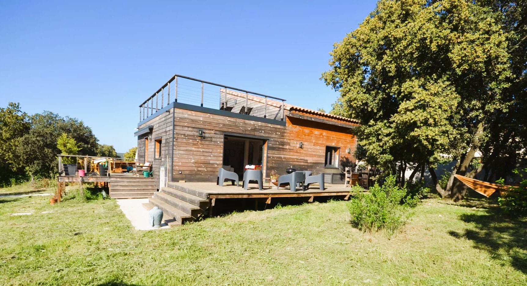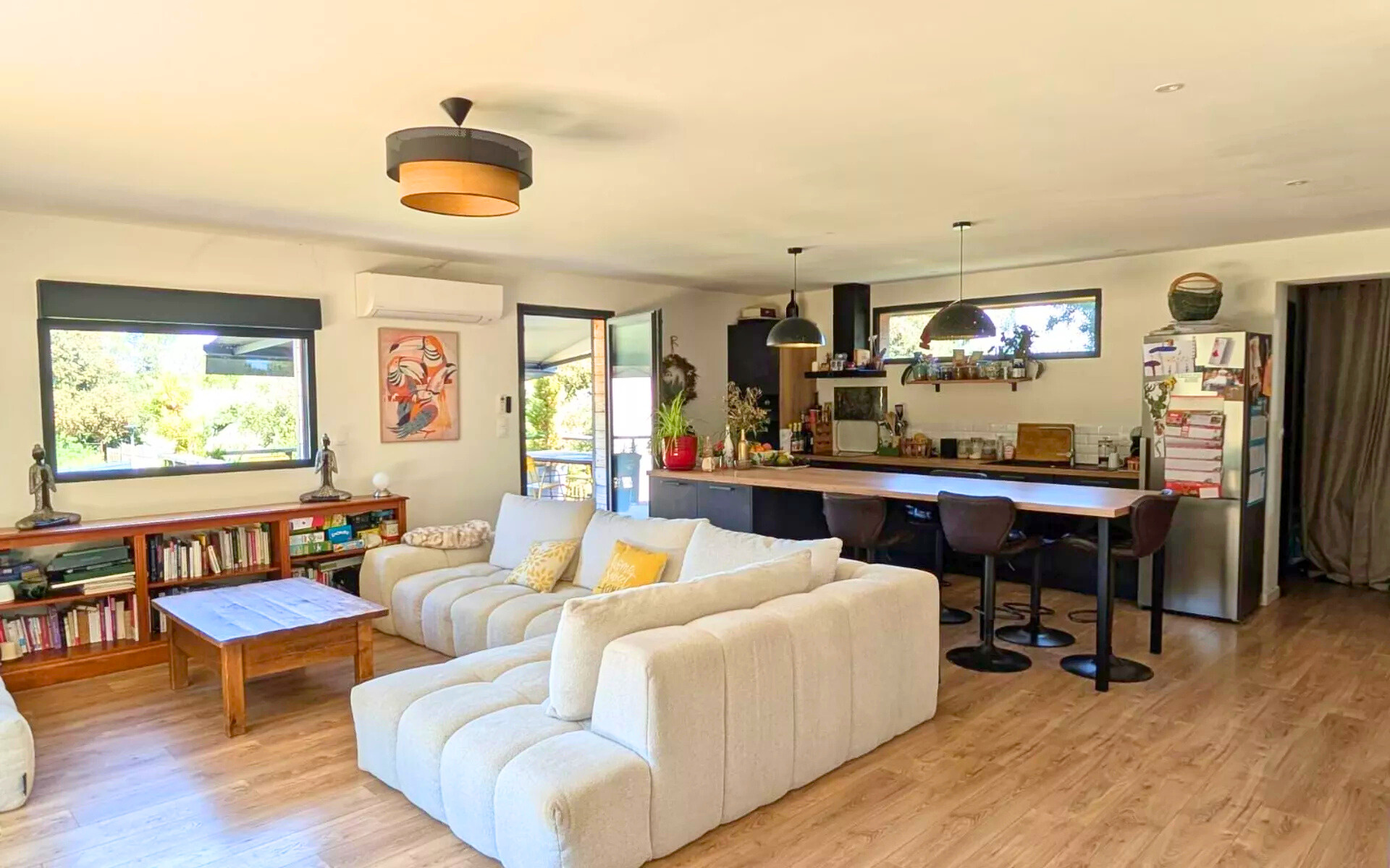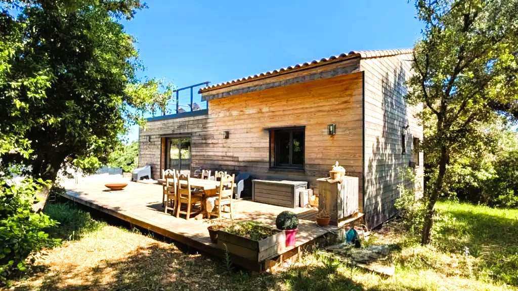 VENDRE Maison atypique à Collias (30210) Dans un cadre naturel exceptionnel, à deux pas des gorges du Gardon, découvrez cette maison atypique de 115 m² construite avec des matériaux écologiques et pensée pour un confort de vie sain et économique. Elle comprend une belle pièce de vie lumineuse avec cuisine ouverte, deux chambres en rez-de-chaussée et une suite parentale à l'étage avec salle d'eau privative. Deux salles d'eau, WC séparés, chauffage par pompe à chaleur air/air, isolation performante, le tout sur un terrain arboré avec terrasse bois. Au calme, sans vis-à-vis, à proximité immédiate des commerces et sentiers, à seulement 10 min d'Uzès. Contact Nathalie tel: +336 10 03 19 93 mail : nathalie@sinfonia.immo Votre agent commercial Sinfonia Immobilier TSI EI - Nathalie Delputte Inscrite au RSAC de NIMES 880 087 812 Selon l'article L.561.5 du Code Monétaire et Financier, pour l'organisation de la visite, la présentation d'une pièce d'identité vous sera demandée. Les informations sur les risques auxquels ce bien est exposé sont disponibles sur le site Géorisques : www.georisques.gouv.fr Prix net, hors frais notariés, d'enregistrement et de publicité foncière. Document non contractuel. www.sinfonia.immo