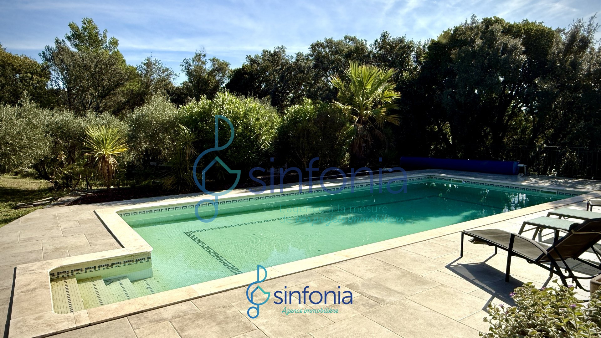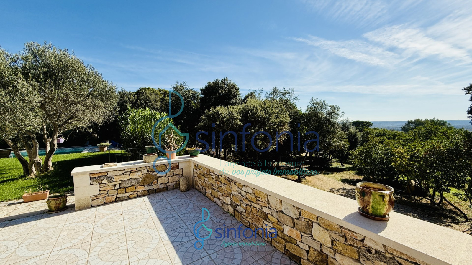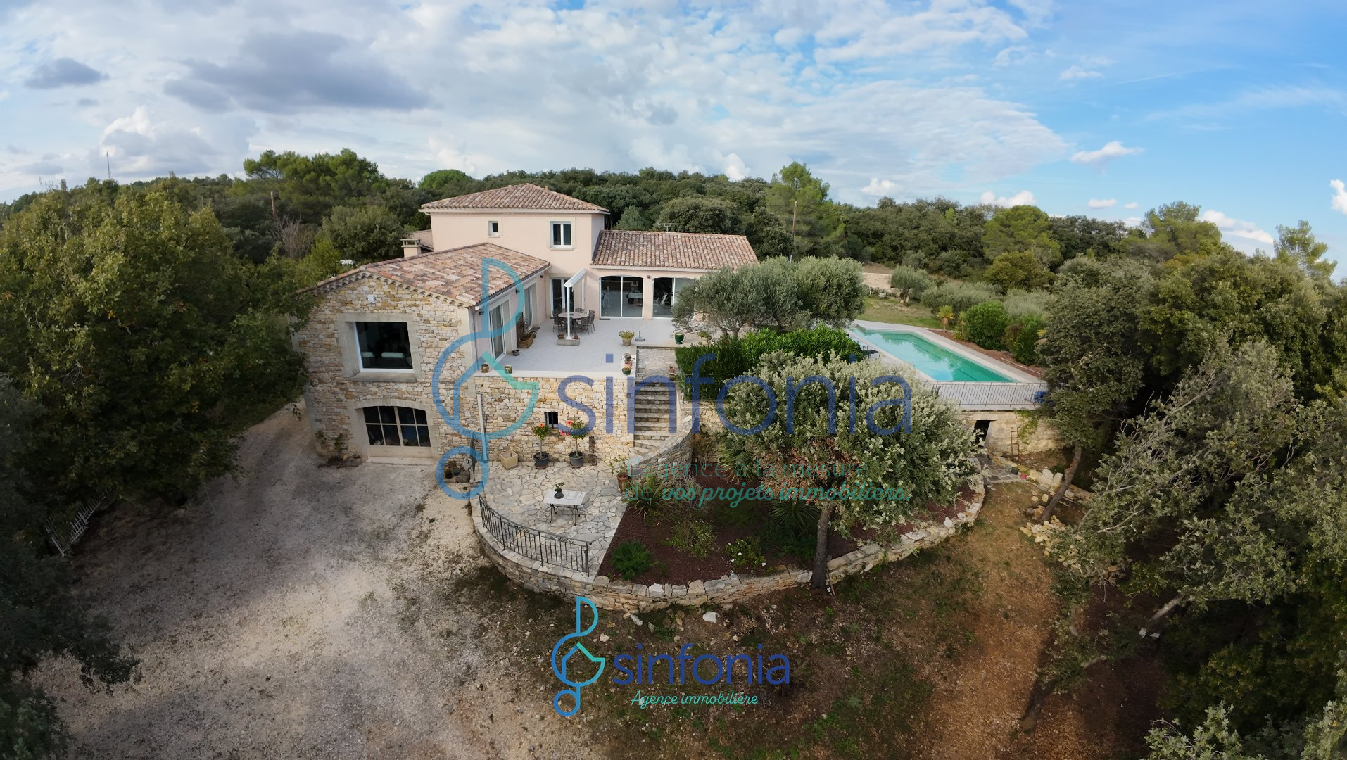 A 10 minutes d'Uzès. Dans un environnement exceptionnel, découvrez cette propriété de 226 m² habitables, un véritable havre de paix qui allie confort moderne et beauté naturelle. Située en bordure de la garrigue, cette demeure offre cinq chambres spacieuses et de beaux volumes lumineux, parfaits pour accueillir famille et amis. Le terrain de 3 443 m², arboré et clos de murs en pierre, garantit une intimité totale et ajoute au charme authentique de cette propriété. Vous bénéficierez d'espaces extérieurs aménagés avec soin : un garage carrelé et atelier de plus de 100 m2, un abri pour voitures, une grande terrasse de 90 m2 avec vue imprenable, et une piscine pour profiter pleinement des beaux jours. Le terrain est également constructible, offrant des possibilités d'agrandissement selon vos projets. Une double entrée vous accueille sur cette demeure de charme. Située à seulement 8 km d'Uzès. Détail de l'aménagement des pièces : Rez-de-chaussée : Un grand salon très lumineux ouvrant sur la terrasse, une cuisine aménagée, un séjour également ouvert sur la terrasse, deux chambres avec salle d'eau et salle de bain, un bureau et un cellier. À l'étage : Trois chambres supplémentaires et une salle de bain. Laissez-vous séduire par cette propriété d'exception, un lieu où nature et élégance se rencontrent pour un cadre de vie unique. Votre agent immobilierl Sinfonia Immobilier Christelle Martinez Selon l'article L.561.5 du Code Monétaire et Financier, pour l'organisation de la visite, la présentation d'une pièce d'identité vous sera demandée. Les informations sur les risques auxquels ce bien est exposé sont disponibles sur le site Géorisques : www.georisques.gouv.fr Prix net, hors frais notariés, d'enregistrement et de publicité foncière. Document non contractuel.