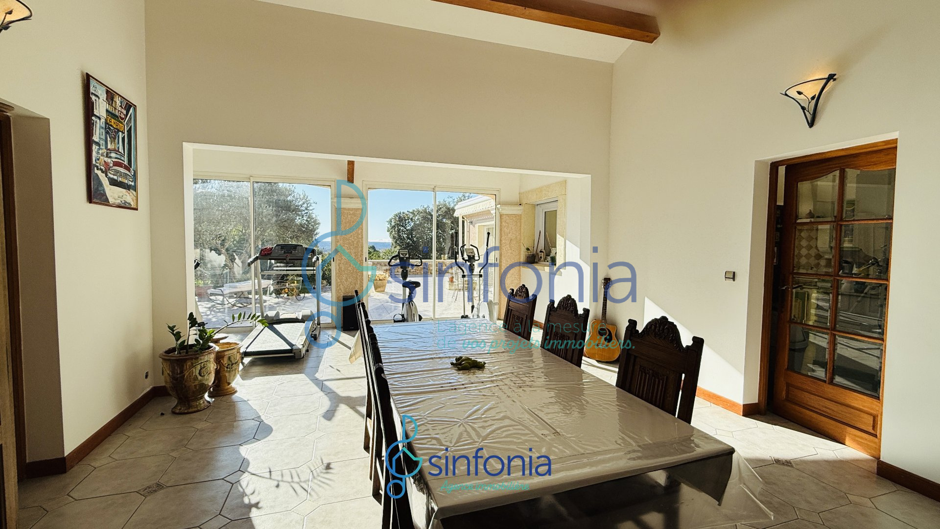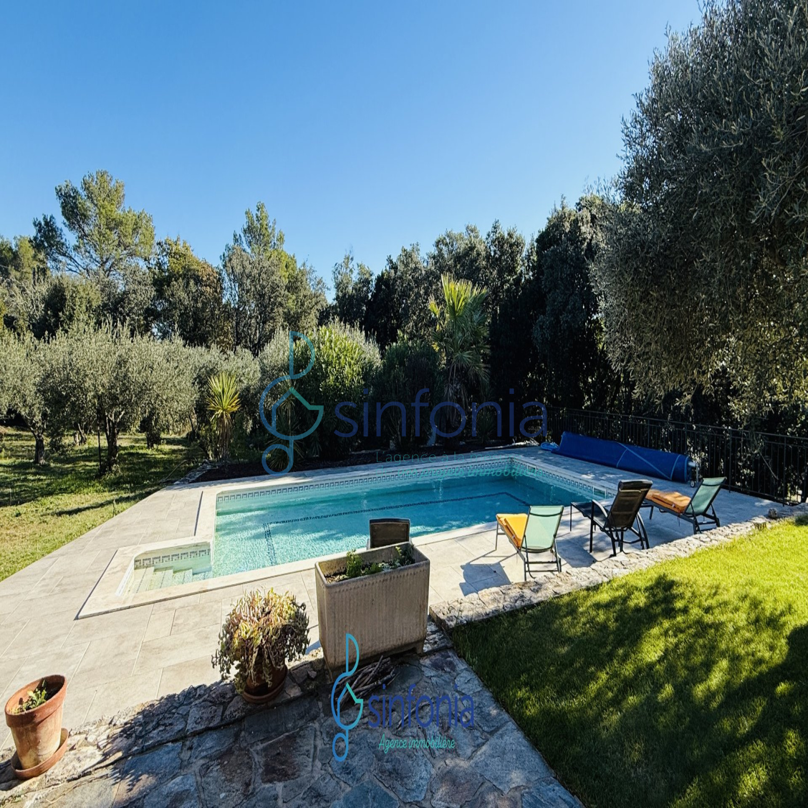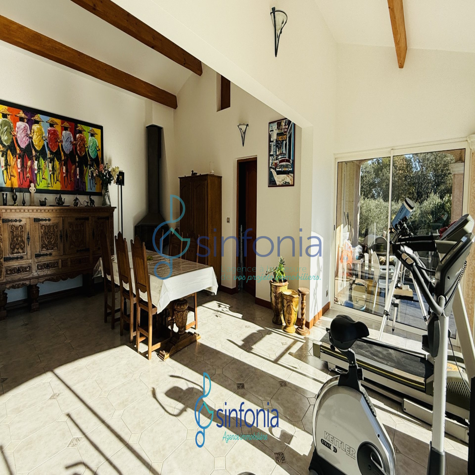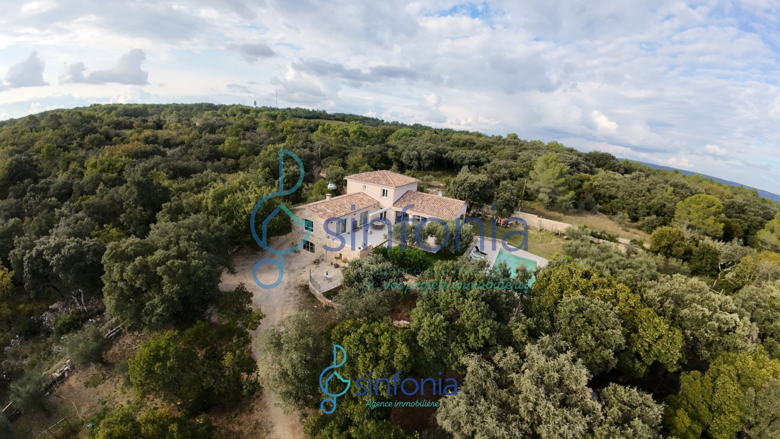 A 10 minutes d'Uzès. Dans un environnement exceptionnel, découvrez cette propriété de 226 m² habitables, un véritable havre de paix qui allie confort moderne et beauté naturelle. Située en bordure de la garrigue, cette demeure offre cinq chambres spacieuses et de beaux volumes lumineux, parfaits pour accueillir famille et amis. Le terrain de 3 443 m², arboré et clos de murs en pierre, garantit une intimité totale et ajoute au charme authentique de cette propriété. Vous bénéficierez d'espaces extérieurs aménagés avec soin : un garage carrelé et atelier de plus de 100 m2, un abri pour voitures, une grande terrasse de 90 m2 avec vue imprenable, et une piscine pour profiter pleinement des beaux jours. Le terrain est également constructible, offrant des possibilités d'agrandissement selon vos projets. Une double entrée vous accueille sur cette demeure de charme. Située à seulement 8 km d'Uzès. Détail de l'aménagement des pièces : Rez-de-chaussée : Un grand salon très lumineux ouvrant sur la terrasse, une cuisine aménagée, un séjour également ouvert sur la terrasse, deux chambres avec salle d'eau et salle de bain, un bureau et un cellier. À l'étage : Trois chambres supplémentaires et une salle de bain. Laissez-vous séduire par cette propriété d'exception, un lieu où nature et élégance se rencontrent pour un cadre de vie unique. Votre agent immobilierl Sinfonia Immobilier Christelle Martinez Selon l'article L.561.5 du Code Monétaire et Financier, pour l'organisation de la visite, la présentation d'une pièce d'identité vous sera demandée. Les informations sur les risques auxquels ce bien est exposé sont disponibles sur le site Géorisques : www.georisques.gouv.fr Prix net, hors frais notariés, d'enregistrement et de publicité foncière. Document non contractuel.