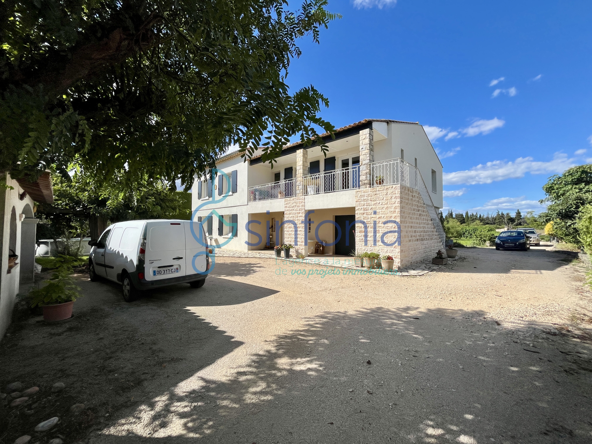 A vendre. Rare, proche d'Uzès 4 km. Propriété familiale rénovée de 195 M2 comprenant un appartement indépendant de 3 pièces, sde et toilette au rez-de-chaussée. Entrée indépendante. A l'étage vous trouverez un grand espace de vie composé de trois parties circulantes distinctes : cuisine, séjour et salle à manger, 3 chambres, sde et toilette. Prestations de qualté. Volets en aluminium pour plus de confort et de sécurité.