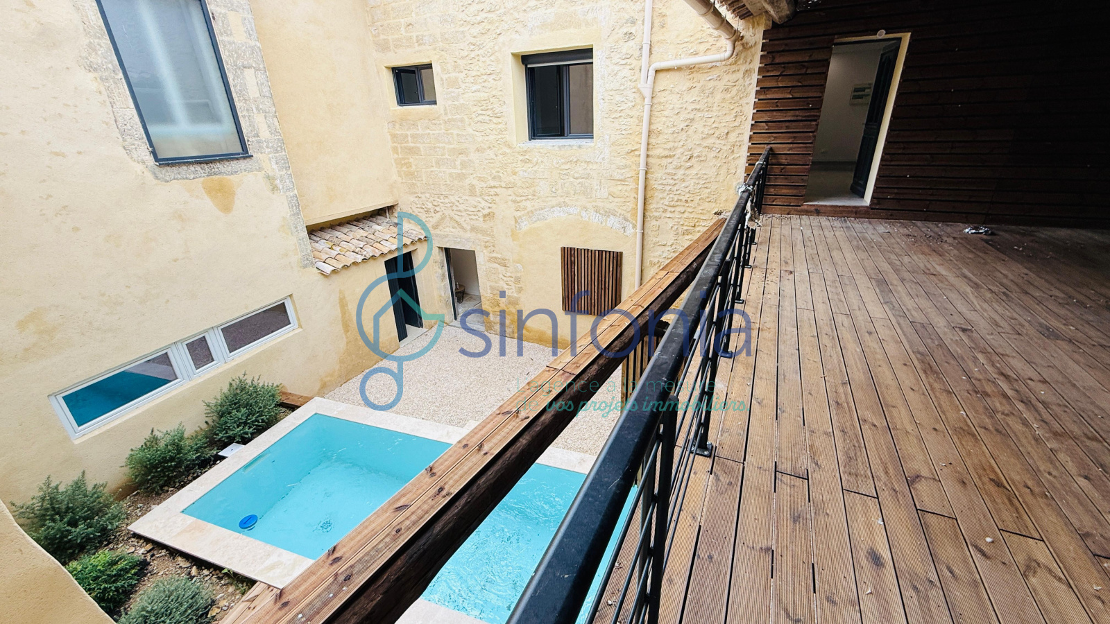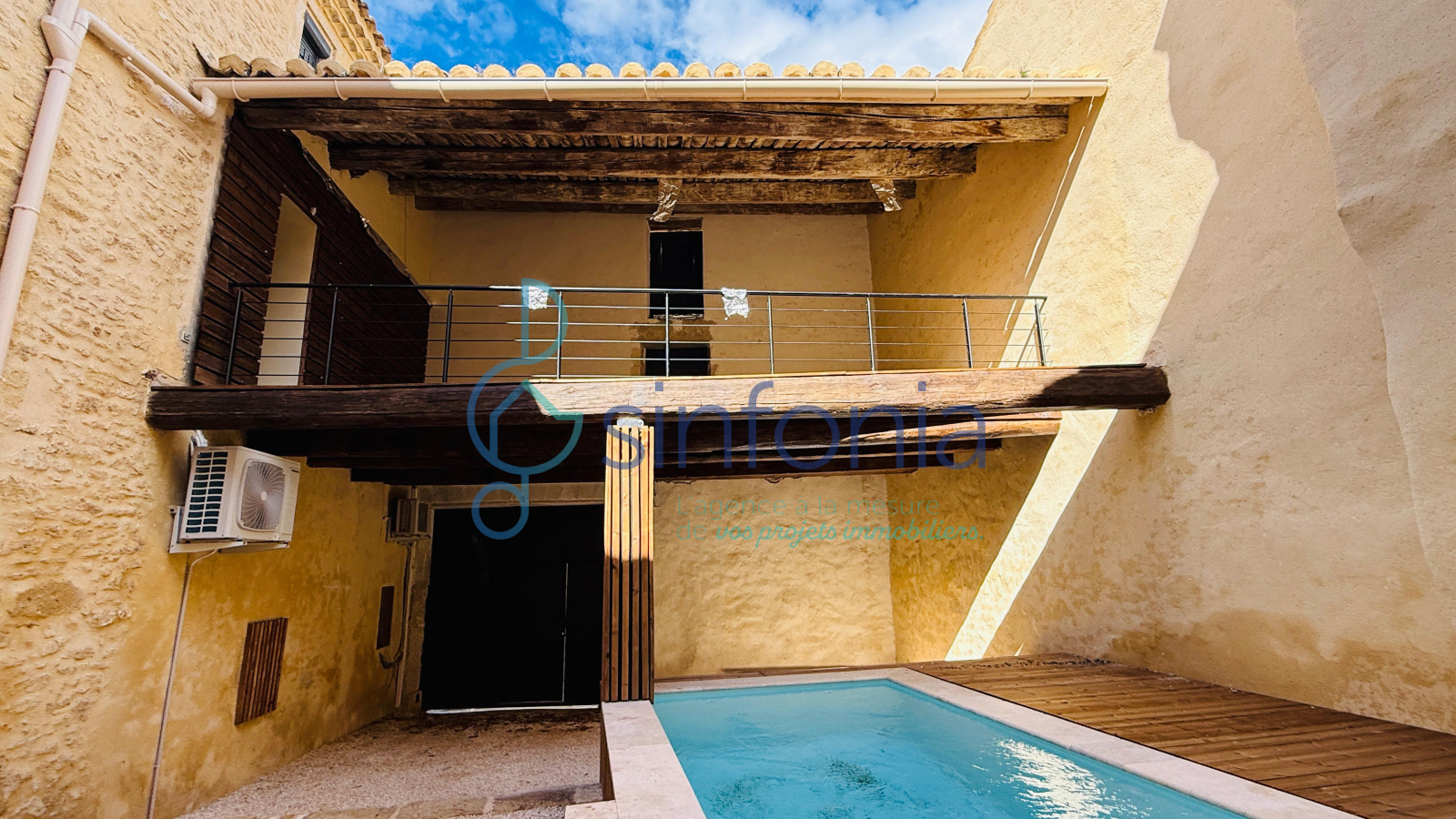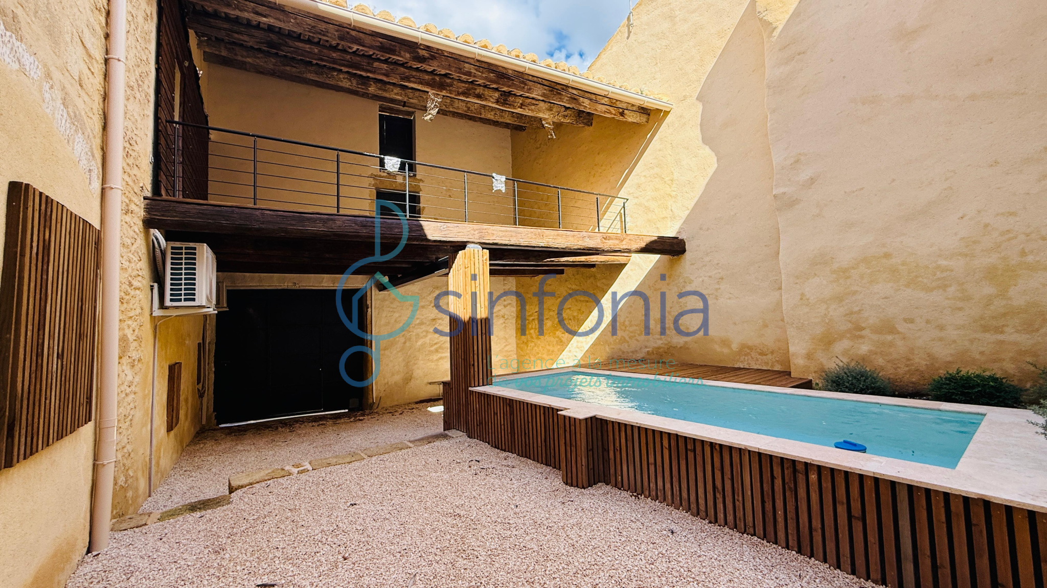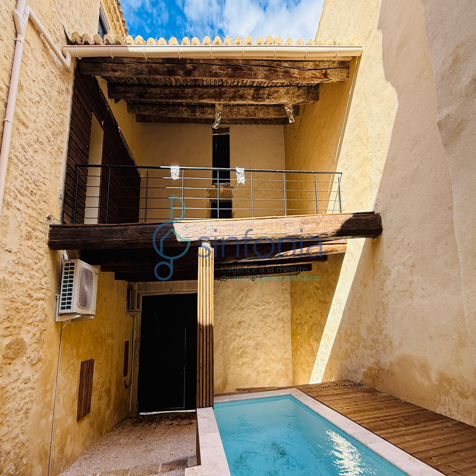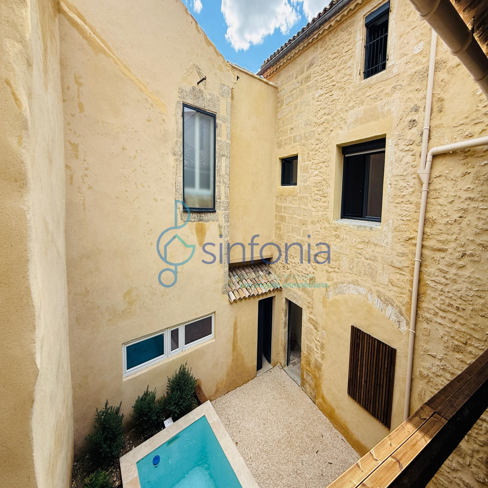 A vendre. Uzès 20 mn. Sortie A9 gare TGV Nîmes pont du Gard. Belle maison vigneronne de caractères située dans la ville de Remoulins, réunissant le charme de l'ancien et le confort du moderne, entièrement rénovée en septembre 2025. Valorisation patrimoniale et location saisonnière attractive. Jardin clos avec piscine 5x2 profondeur de 1m60.