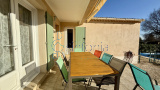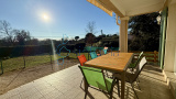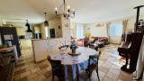 La maison s’ouvre sur une belle pièce de vie lumineuse, composée d’une cuisine ouverte donnant accès à une terrasse, prolongée par un séjour convivial.
