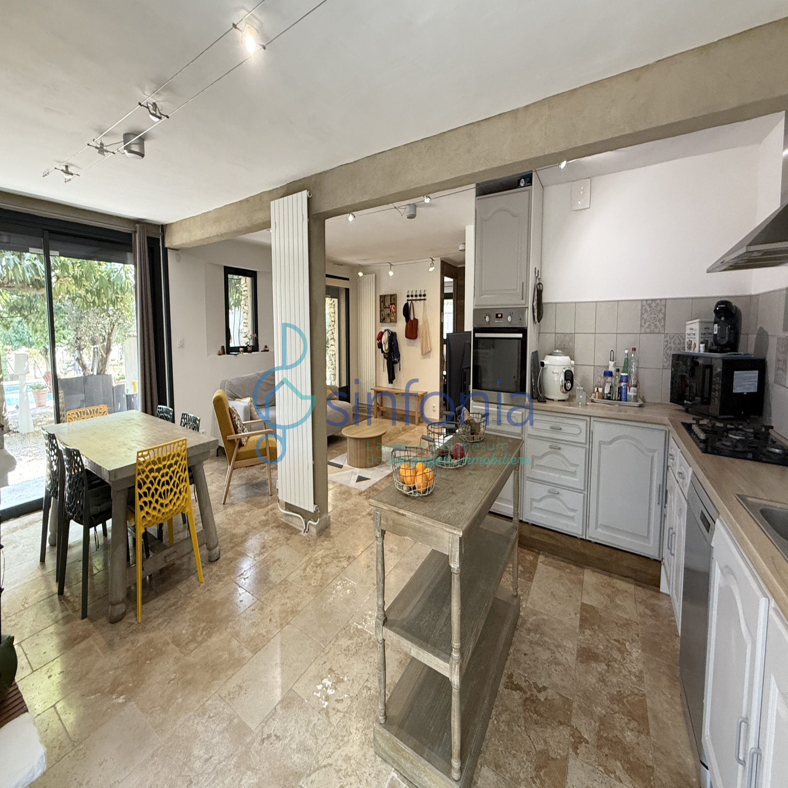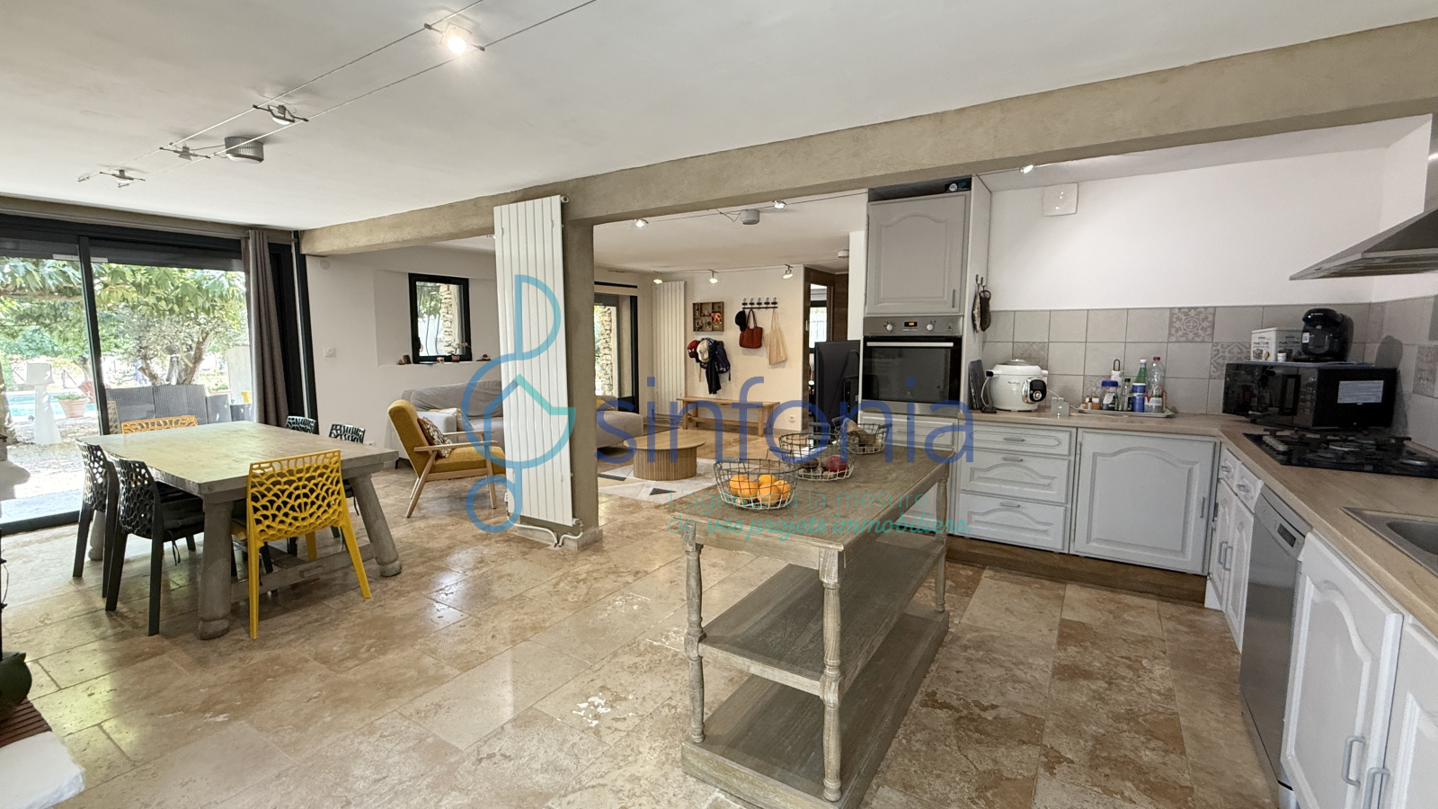 Ce qui séduit immédiatement dans cette maison ? Son grand terrain paysagé de 2 500 m², sans vis-à-vis, sa pièce de vie lumineuse de 56 m² ouverte sur la nature, et sa dépendance aménagée de 41 m² qui offre un beau potentiel locatif ou l’accueil d’amis en toute indépendance. Entièrement rénovée, elle marie confort et élégance : chauffage central, climatisation, cheminée, menuiseries aluminium double vitrage, piscine au sel (11x5) et forage. A seulement 2 km du centre historique d’Uzès.
