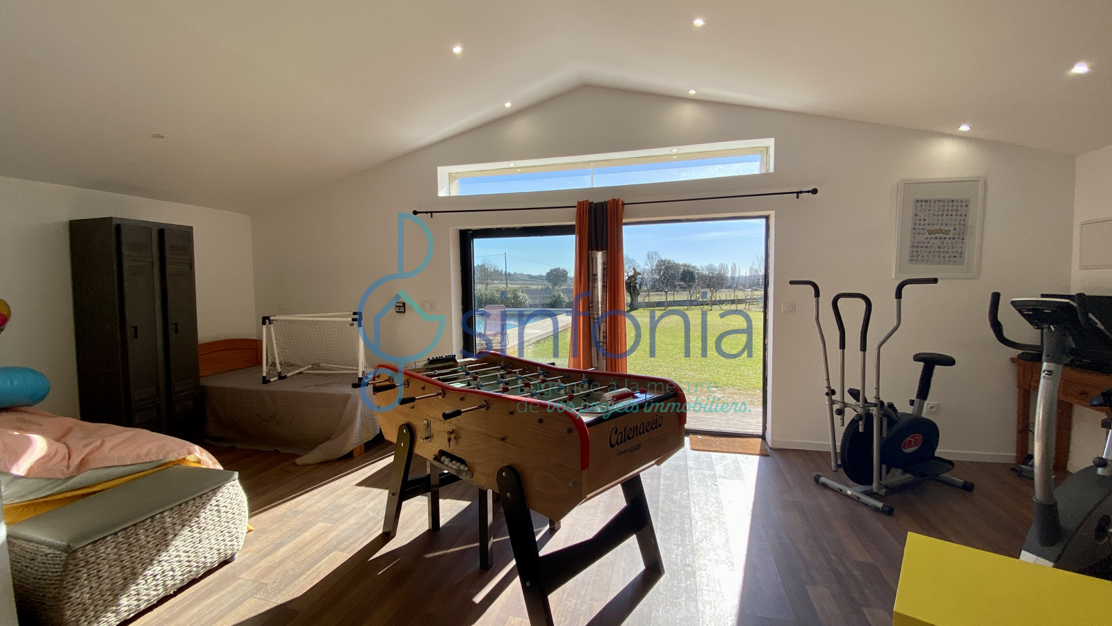 Composition : Rez-de-chaussée : une chambre avec salle d’eau privative, et une belle pièce de viede 56 m². A l ‘étage : trois chambres, dont une vaste suite de 28 m² avec dressing et balcon, pour savourer la vue sur la nature. En extérieur : terrain arboré et clos de 2 500 m², piscine au sel, et une dépendance de 41 m² pour vos projets (gîte, bureau, locatif).