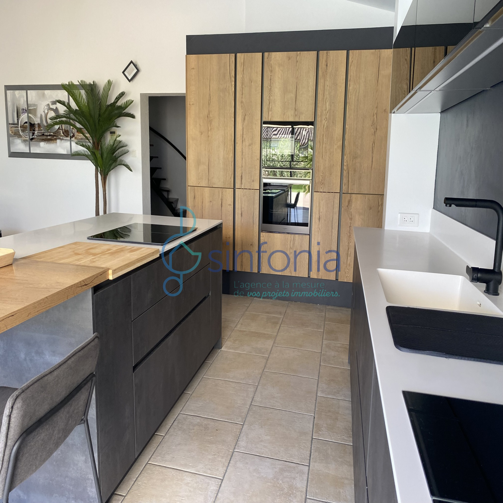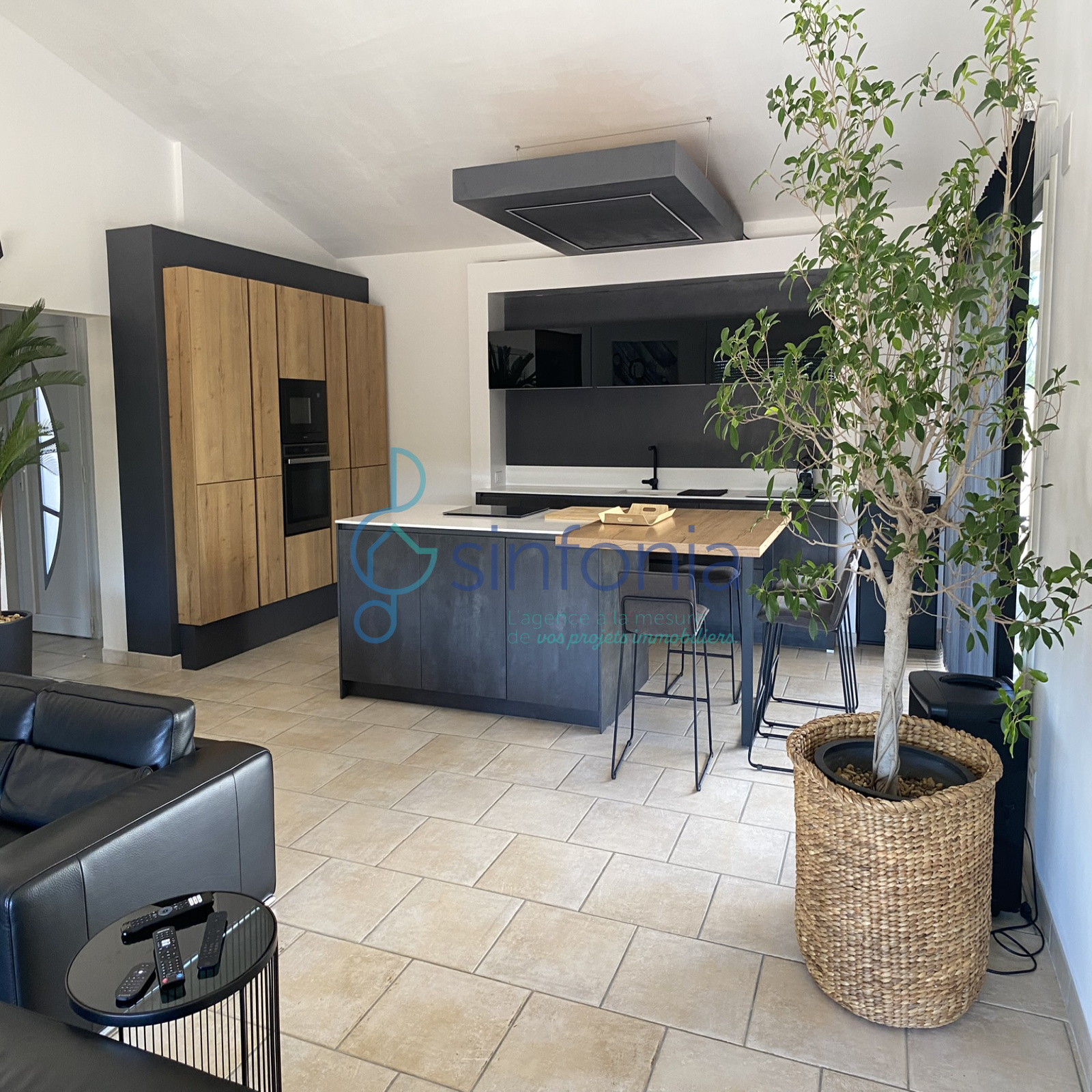 L'accueil se fait par un vaste hall d'entrée avec rangements qui dessert une pièce de vie cathédrale monumentale de 53,79 m². La cuisine haut de gamme, véritable pièce maîtresse avec son îlot central et ses finitions modernes, s'ouvre largement sur les terrasses.