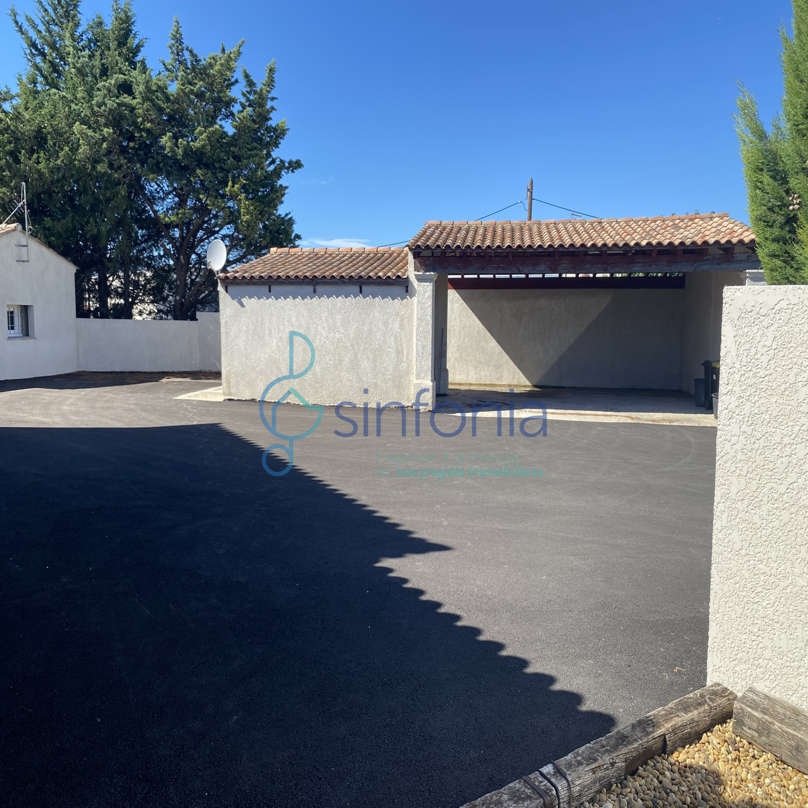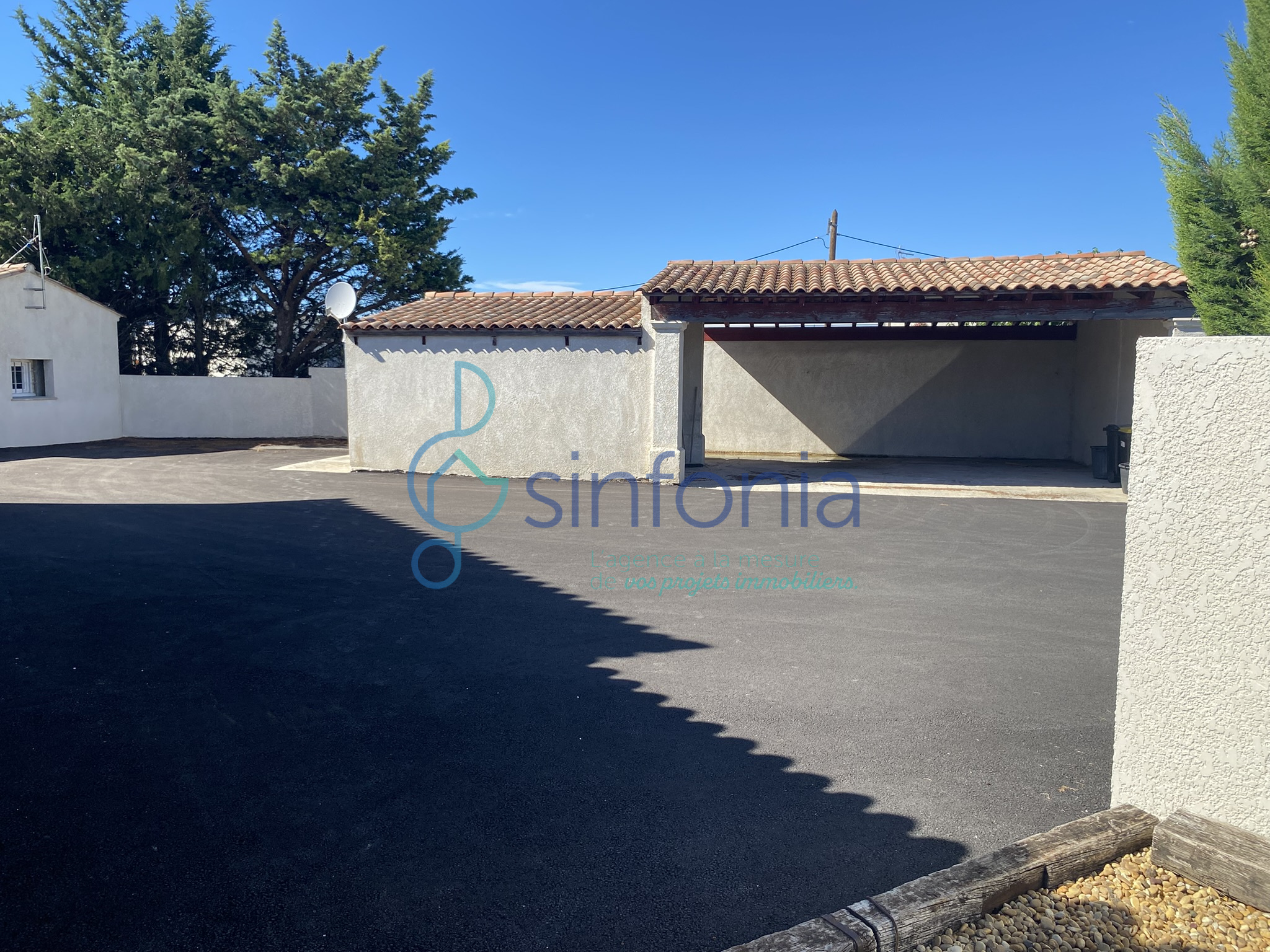 Prestations techniques : Pompe à chaleur, climatisation réversible, menuiseries aluminium et vaste espace de stationnement enrobé avec carport de 46 m².