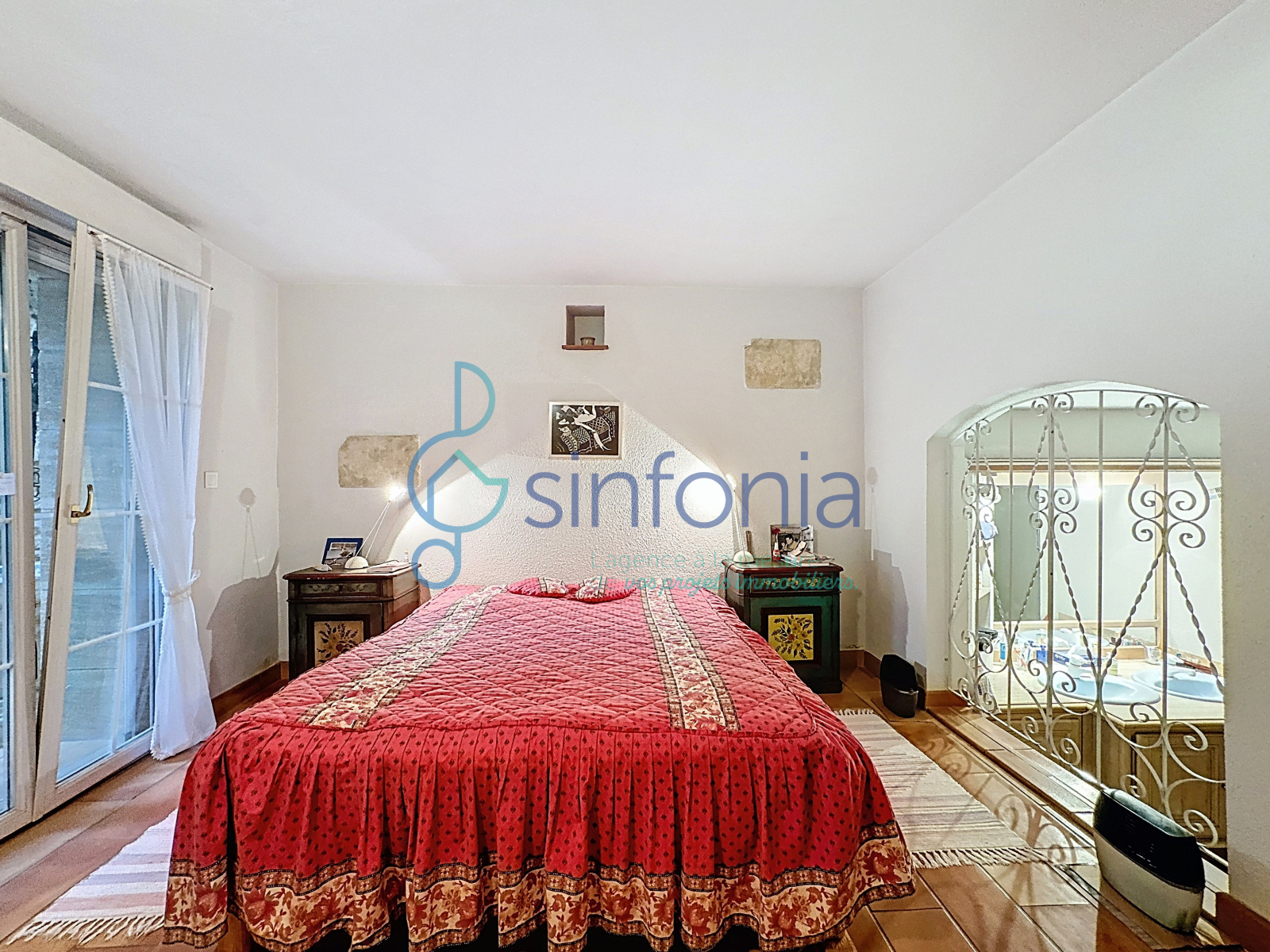 En rez-inférieur, une chambre climatisée dispose de sa propre salle d’eau avec WC et s’ouvre directement sur un patio intérieur intimiste, calme et à l’abri des regards. Ce niveau comprend également une cave, une buanderie et un espace technique.