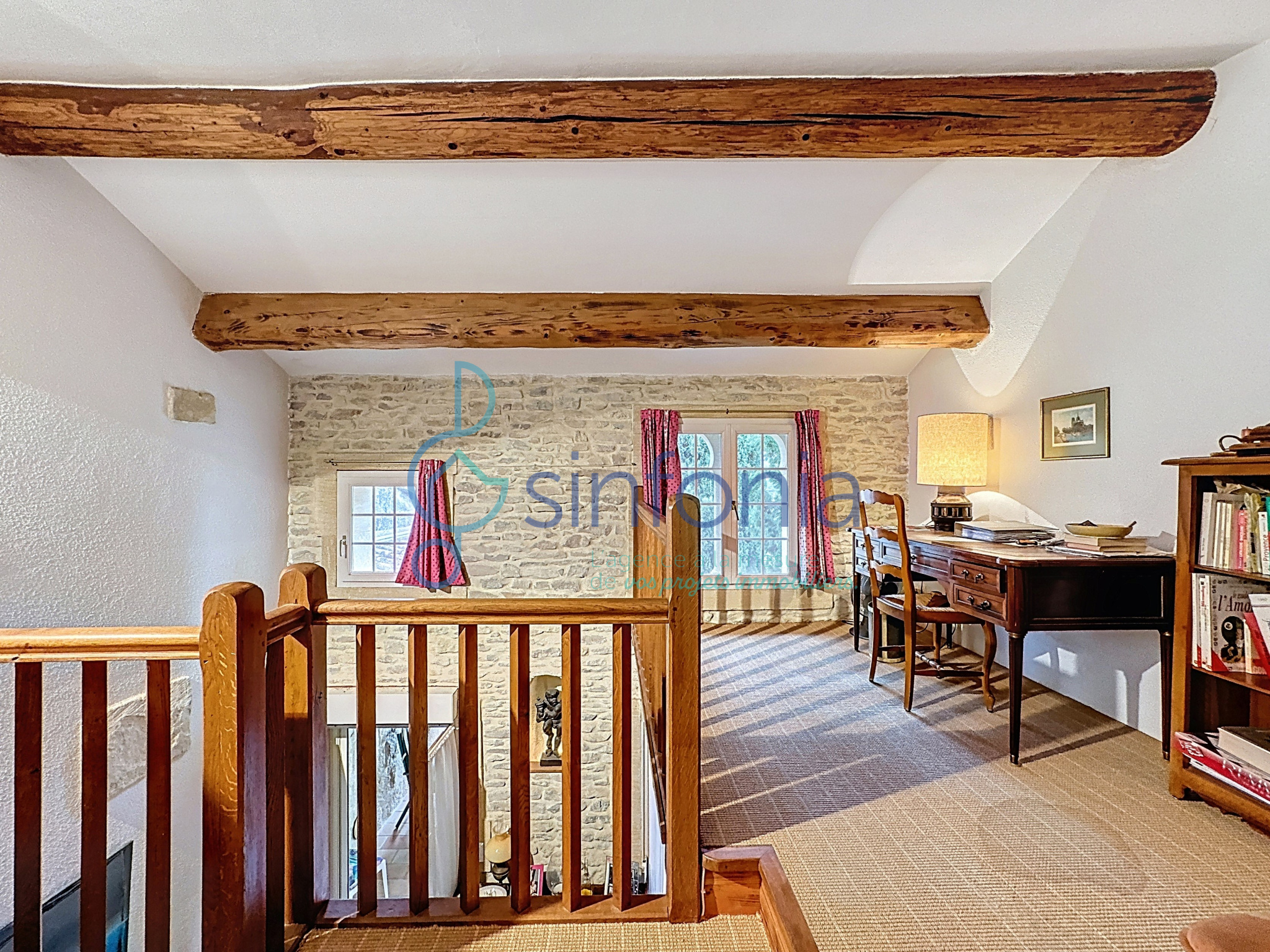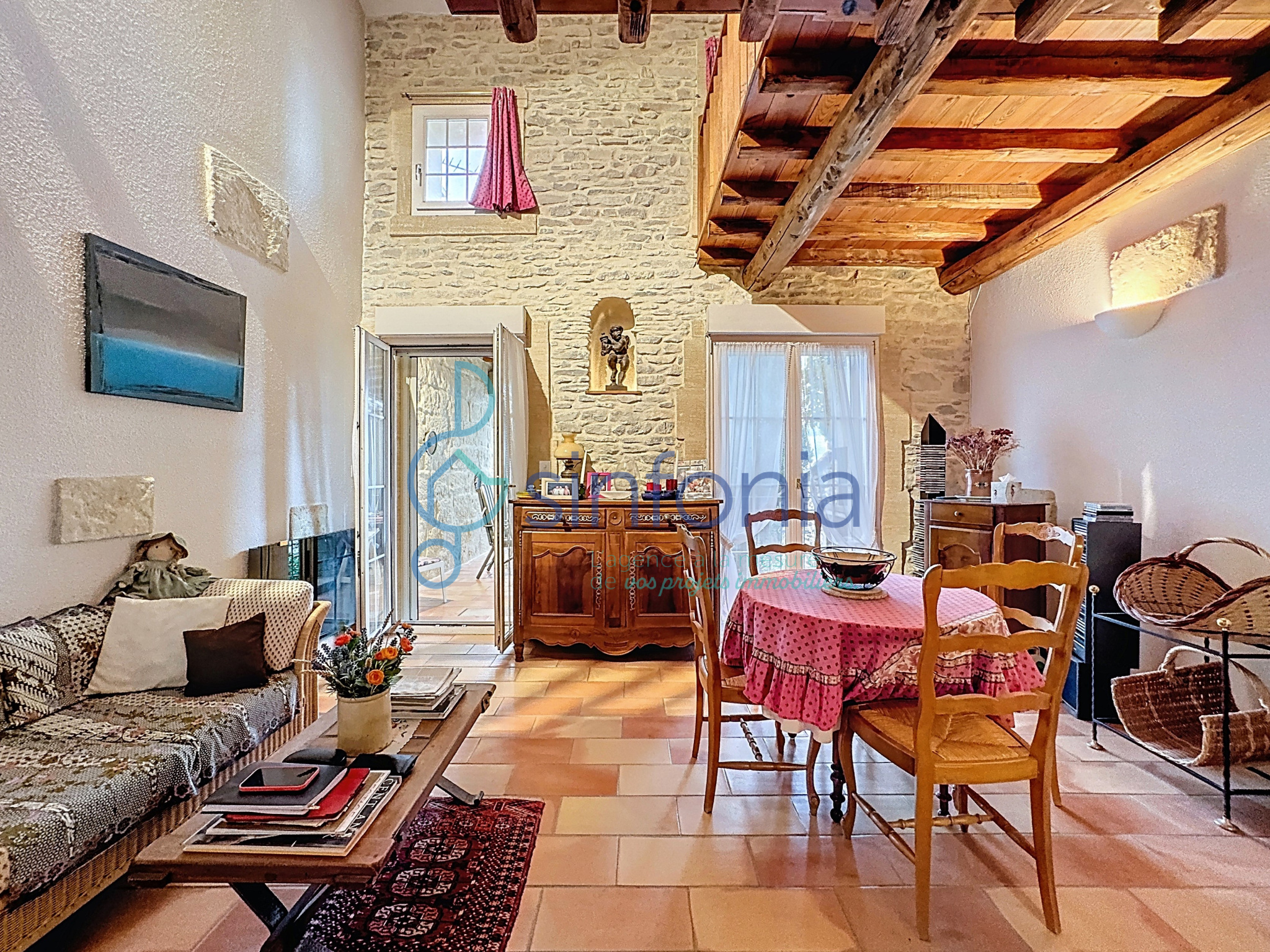 La maison conserve de nombreux éléments de caractère tels que les murs en pierre, les poutres apparentes, la cheminée et les volumes atypiques. Elle bénéficie d’un environnement calme tout en étant à proximité immédiate des commerces et des commodités.
