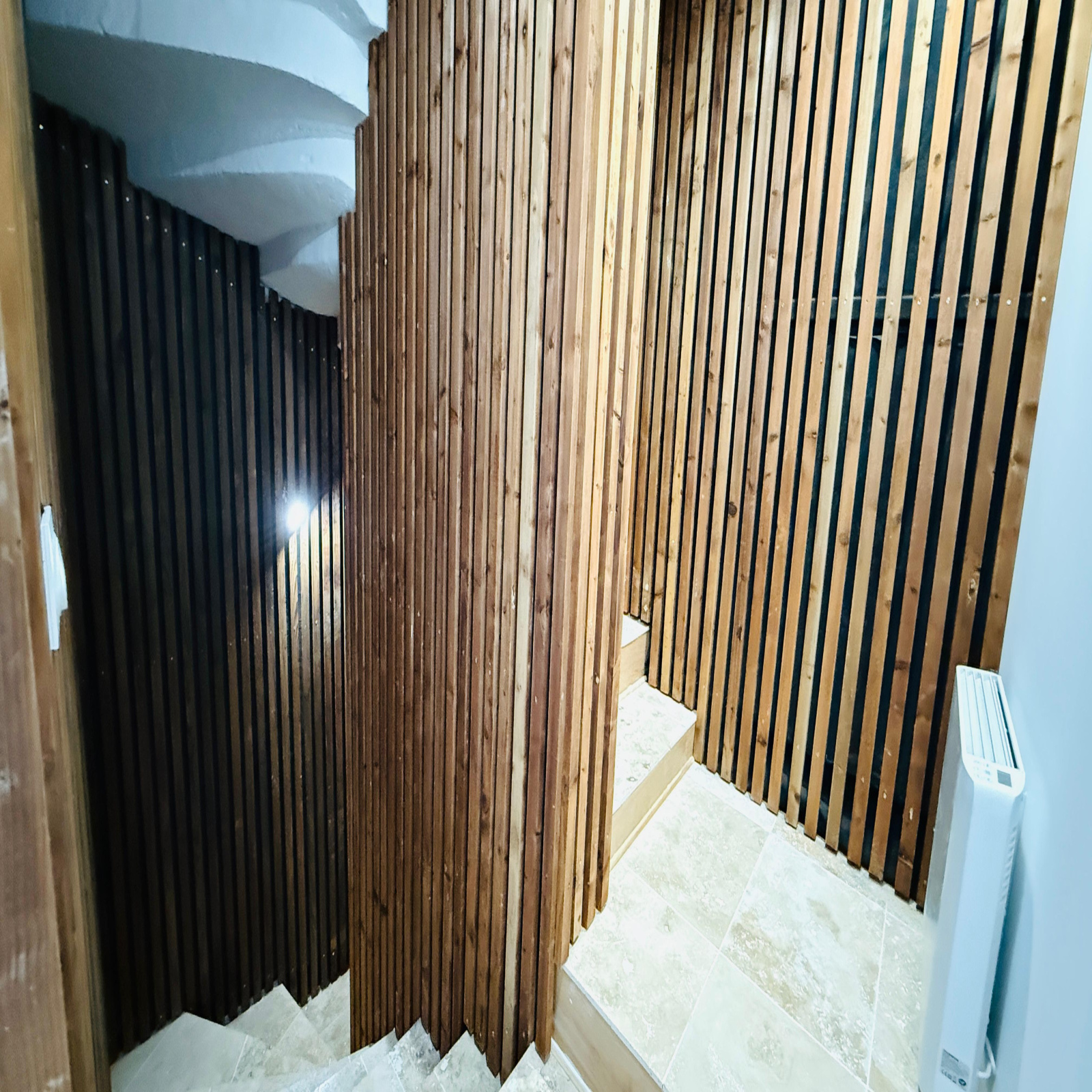 Au 1er étage. Toilette. Salon. Salle à manger et une cuisine américaine contemporaine donnant sur une grande terrasse couverte. Idéal pour de belles soirées d'été. Au 2ème étage. Trois chambres dont une suite parentale, une salle d'eau spacieuse et de qualité, toilette.