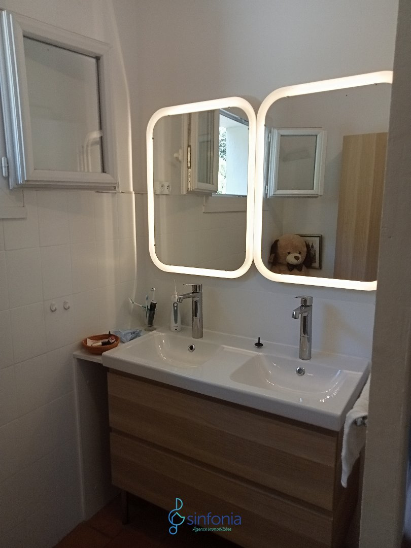 Maison principale composée d'une grande pièce de vie de plus de 70 m², lumineuse, avec cuisine ouverte, salon et espace salle à manger, 2 chambres confortables,salle d'eau et wc séparés. Garage attenant de 30 m2.
