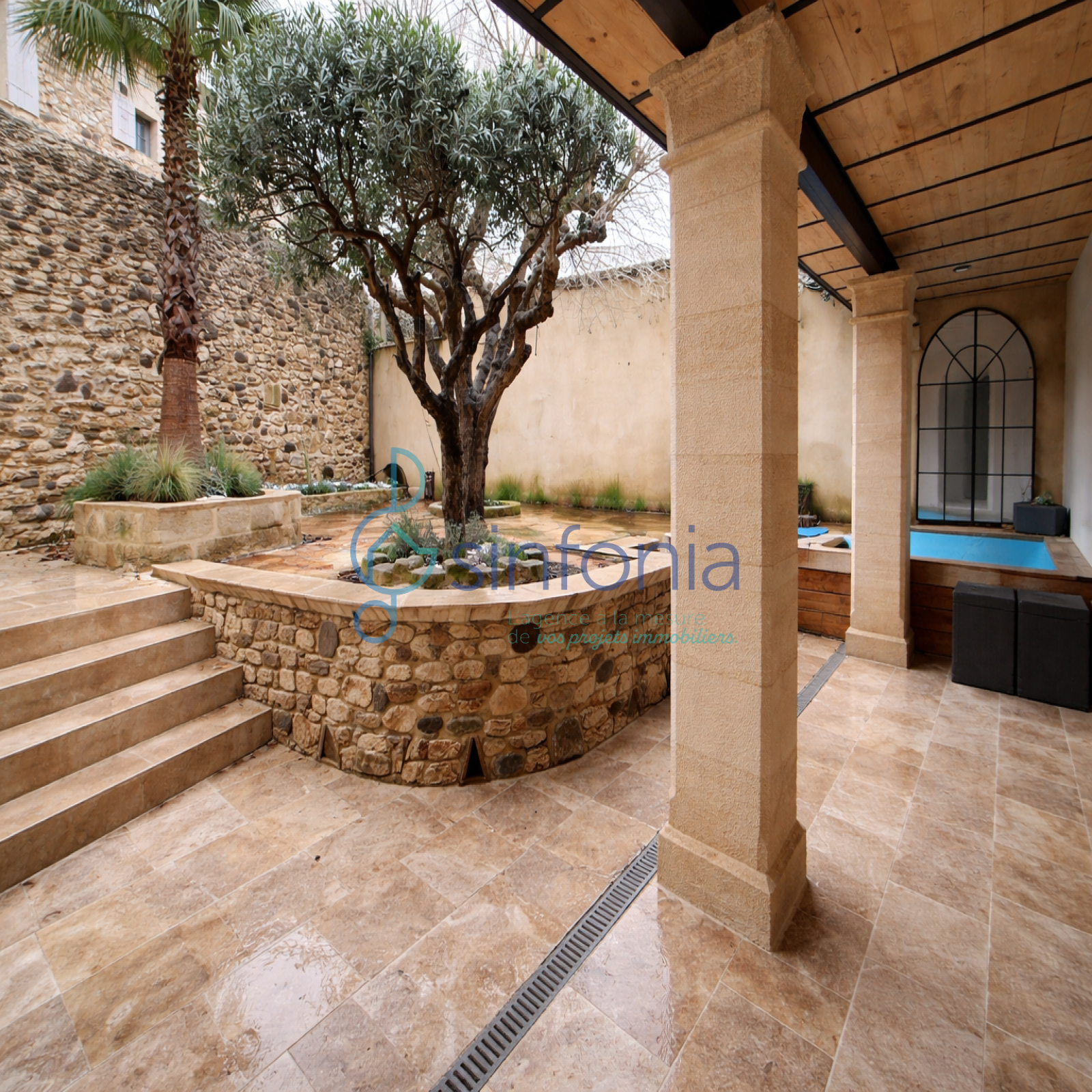 Dès le passage de la porte de rue, l’atmosphère change : une cour intérieure intimiste, arborée et fleurie, entièrement carrelée, se dévoile comme une véritable pièce de vie extérieure. Pensée pour recevoir et profiter pleinement des beaux jours, elle accueille un bassin chauffé de 2x2 mètres, parfait pour prolonger les soirées d’été dans un cadre convivial et privilégié.