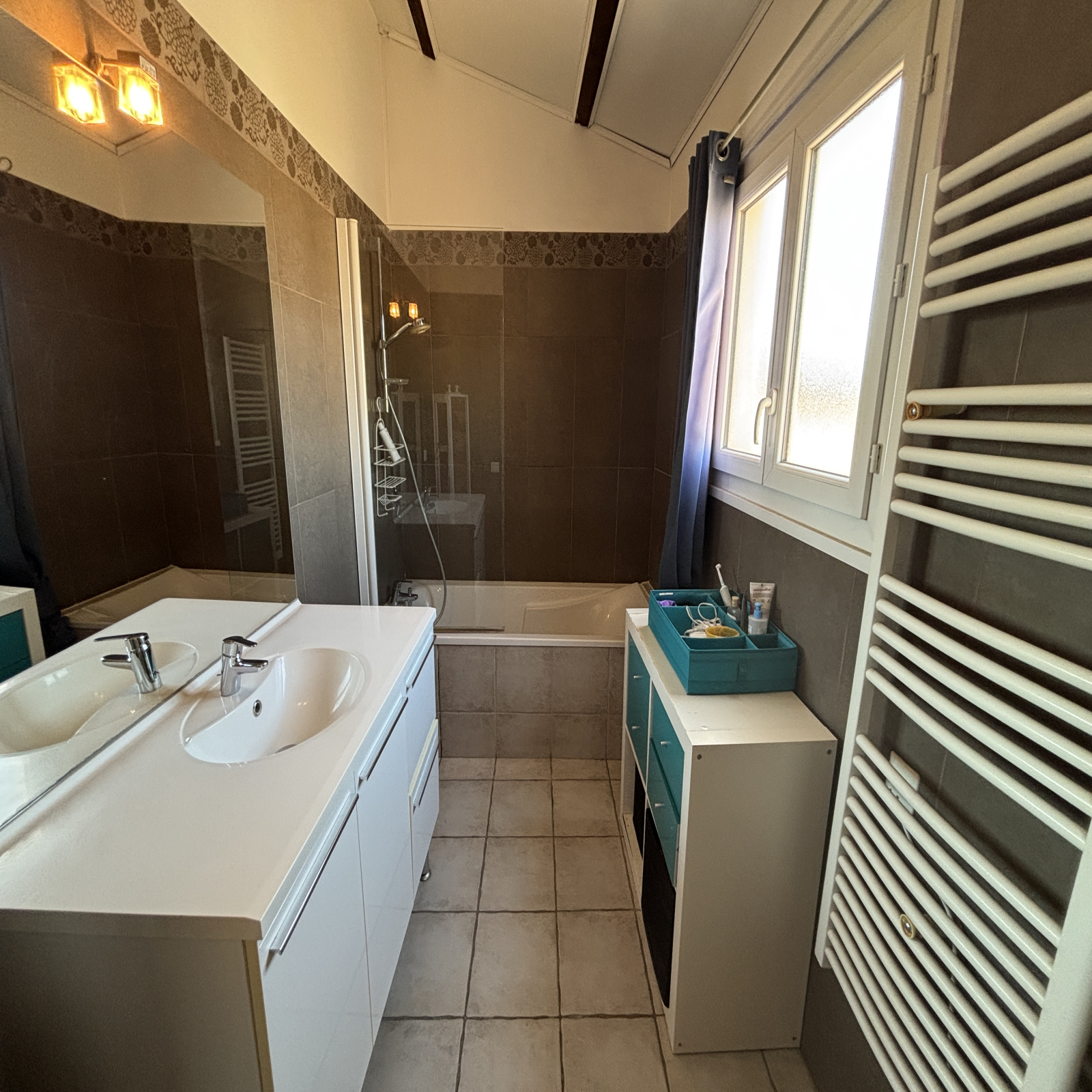 Notre maison en pierre, entièrement rénovée, offre 119 m² habitables : un séjour baigné de lumière où l’on aime se retrouver, et 3 chambres spacieuses avec leur salle de bain privative, pensées pour la vie de famille ou pour recevoir ses proches comme il se doit.