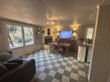 La maison principale se compose de deux chambres, d’une salle de bain, d’un WC indépendant, d’une belle cuisine ouverte sur le séjour, ainsi que d’un espace de rangement attenant et indépendant, très pratique pour les outils et le stockage.