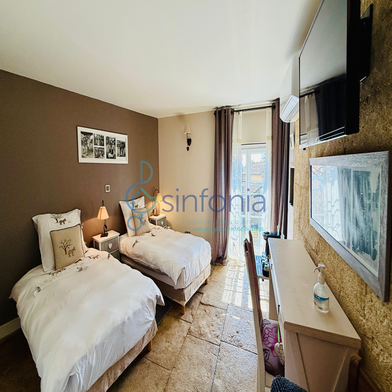 Côté extérieurs, vous profiterez d’un agréable jardin intérieur arboré de 65 m², à l’abri des regards, ainsi que de deux terrasses (dont un solarium) avec vue dégagée sur les toits du village. La possibilité d’y créer une piscine ajoute encore au potentiel du lieu.