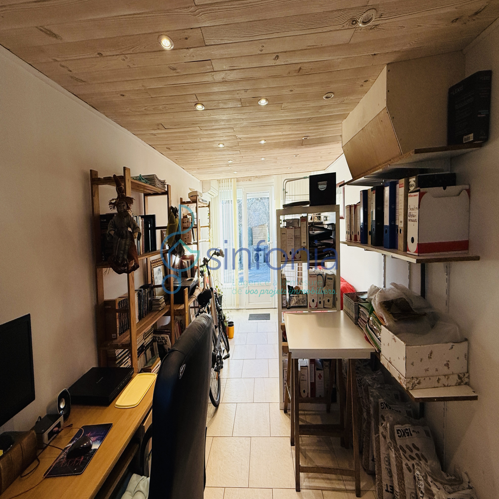 Un garage aménagé en pièce supplémentaire, actuellement utilisé comme bureau, complète l’ensemble et offre une belle possibilité d’espace polyvalent.